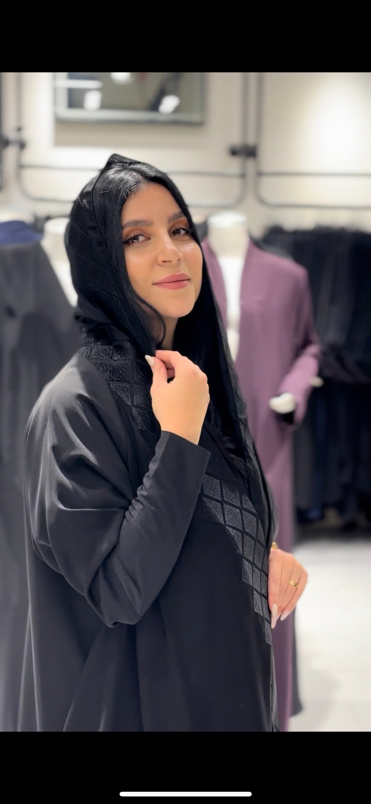 عباية قماش ملكي دبل كلوش تطريز فاخر كامل الأطراف والكم استريتش