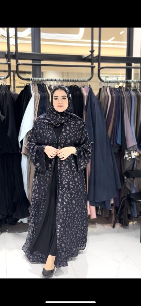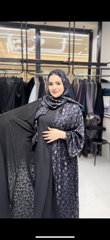 عباية قماش أووبل مشجر صيفي ومبطن قصة كلوش
